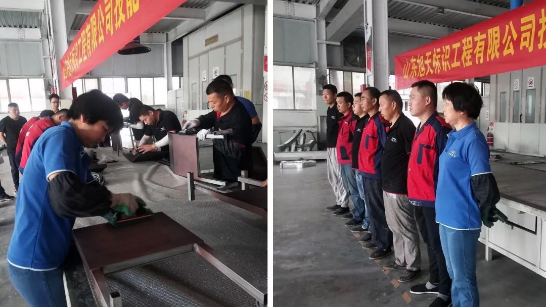 为了激发旭天员工的工作热情,提升工作效率,山东旭天标识工程有限公司于2019年8月份组织了技能比武大赛活动。比赛涉及工厂与制作部部门内部技能切磋,比赛结果由各班组长及部门经理根据操作的规范性、熟练程度以及完成度进行打分,最后根据评分排名决出各个项目的冠军、季军予以表彰奖励。
