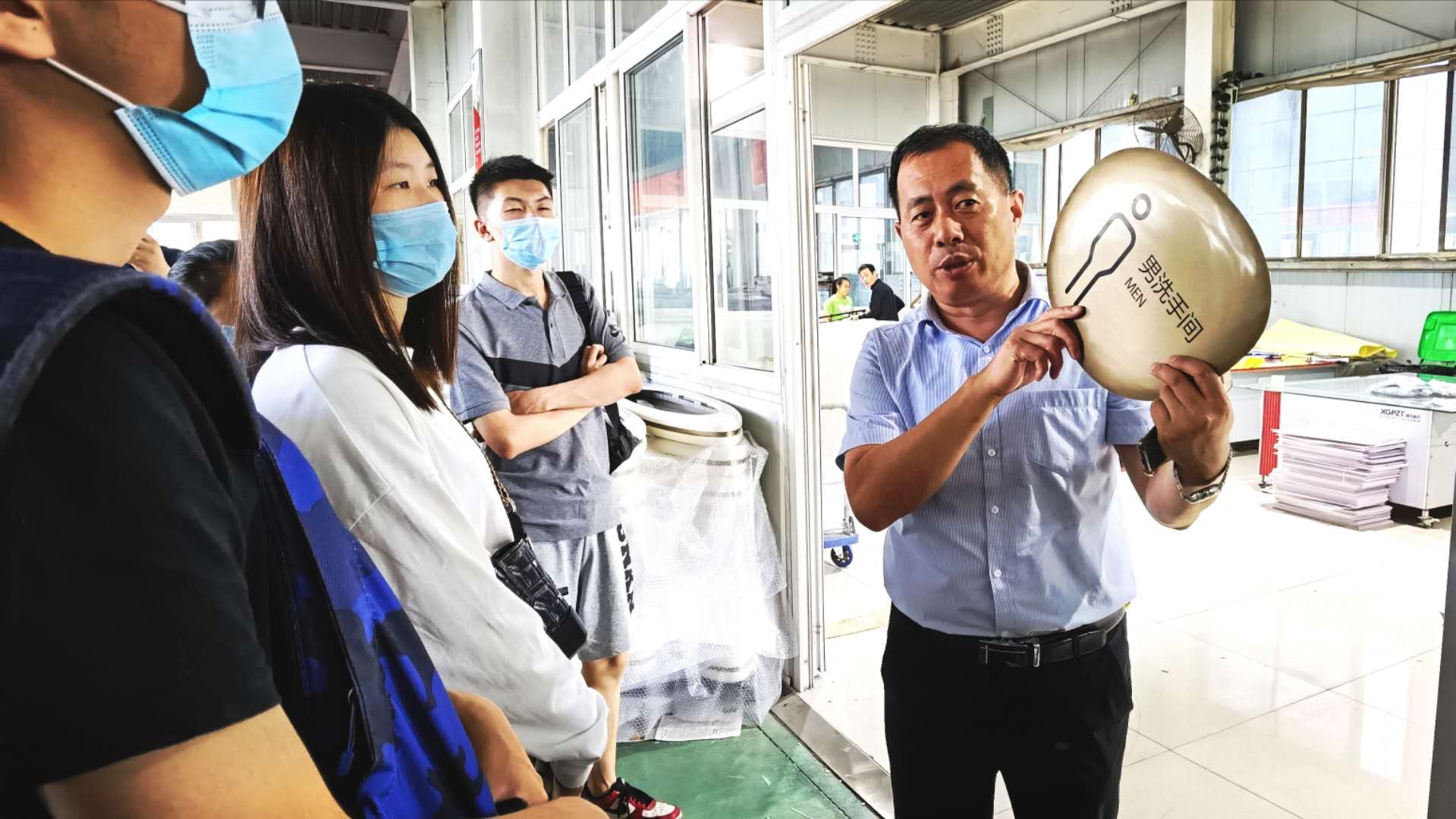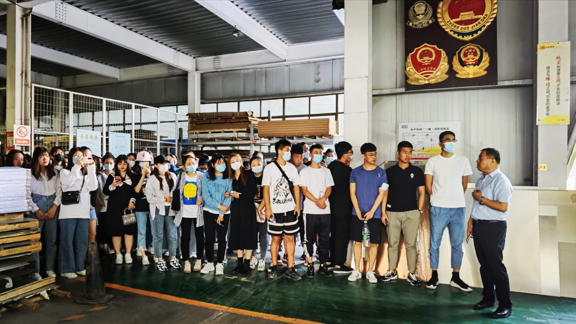 在生产车间,苗总带领同学们实地观看了标识产品的各项生产环节,详细讲解了每一项标识产品的生产流程及材质工艺,使同学们近距离的接触和了解每一件标识产品的由来,让同学们提前进入到一线的设计环节和生产实习中去。