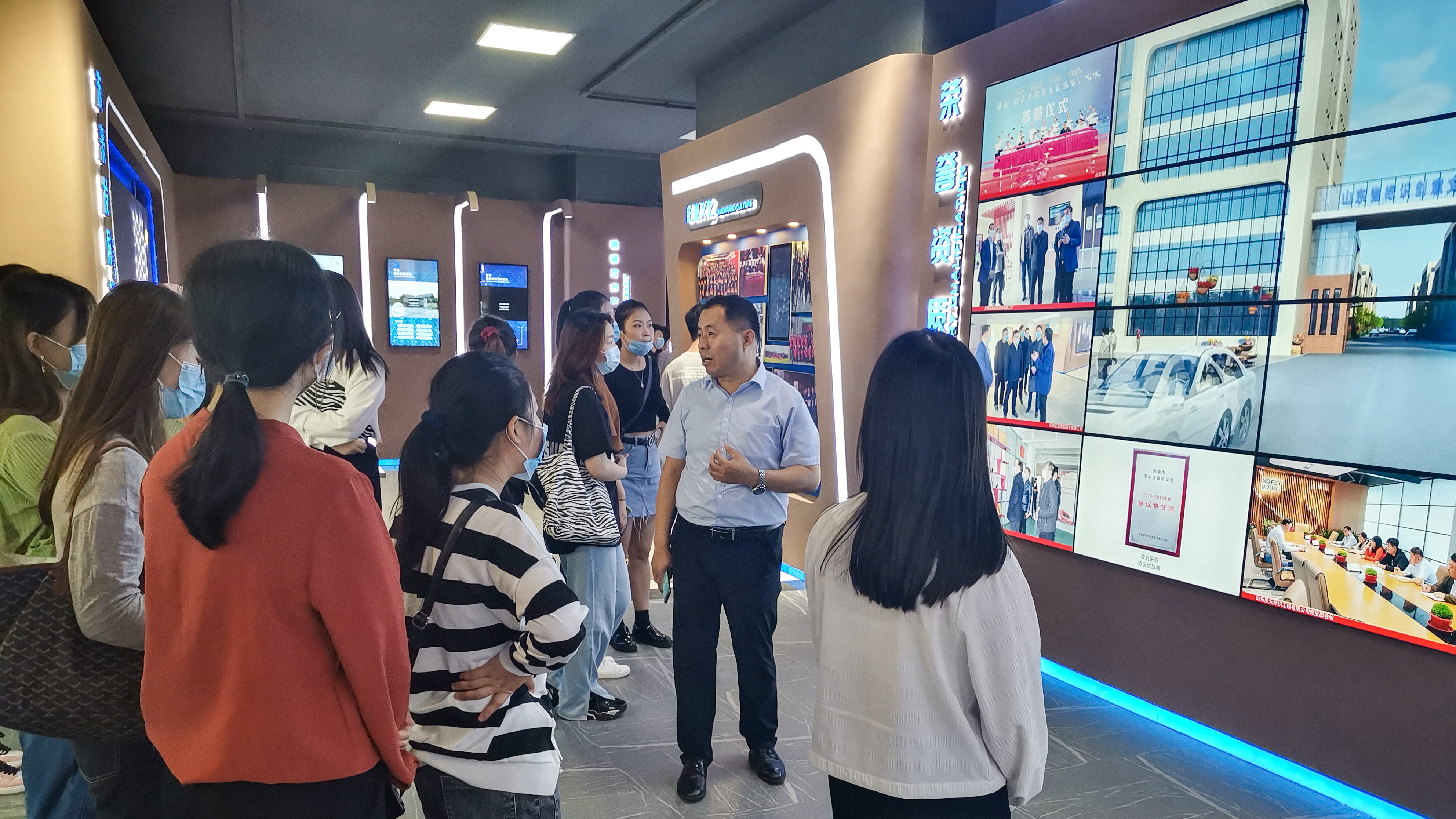 从公司一楼开始,苗总首先带领各位同学参观了公司智能展厅及实物展厅,向大家讲解了企业的发展历程,企业文化、生产经营及业务范围,使各位同学对企业有了进一步的认识和了解。