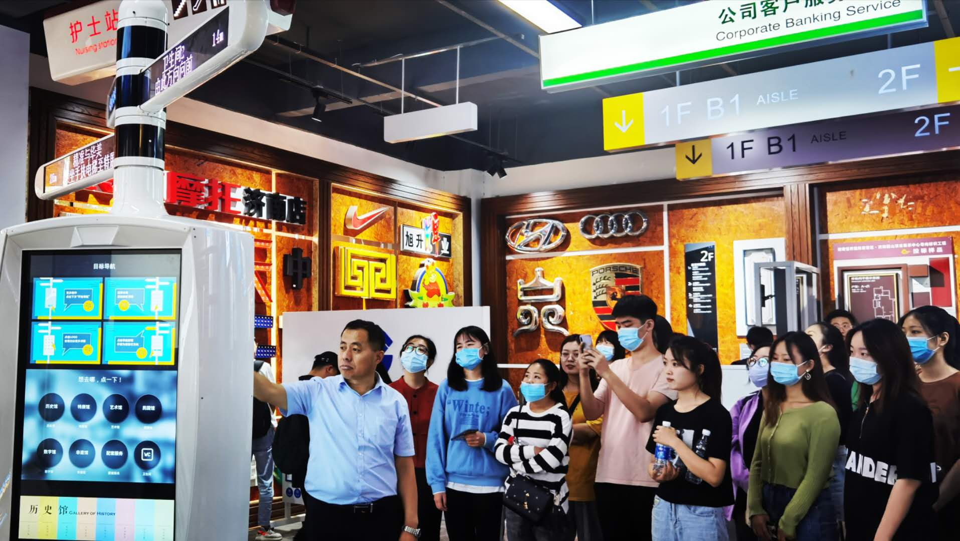 9月20日上午,由山东青年政治学院设计艺术学院周云飞教授带领的师生团队到我司参观学习。公司总经理苗玉峰热情接待,并带领着同学们实地参观了公司智能展厅、实物展厅、办公场所以及生产车间,使同学更加深入的了解了企业发展历程、企业文化及标识产品的相关知识。