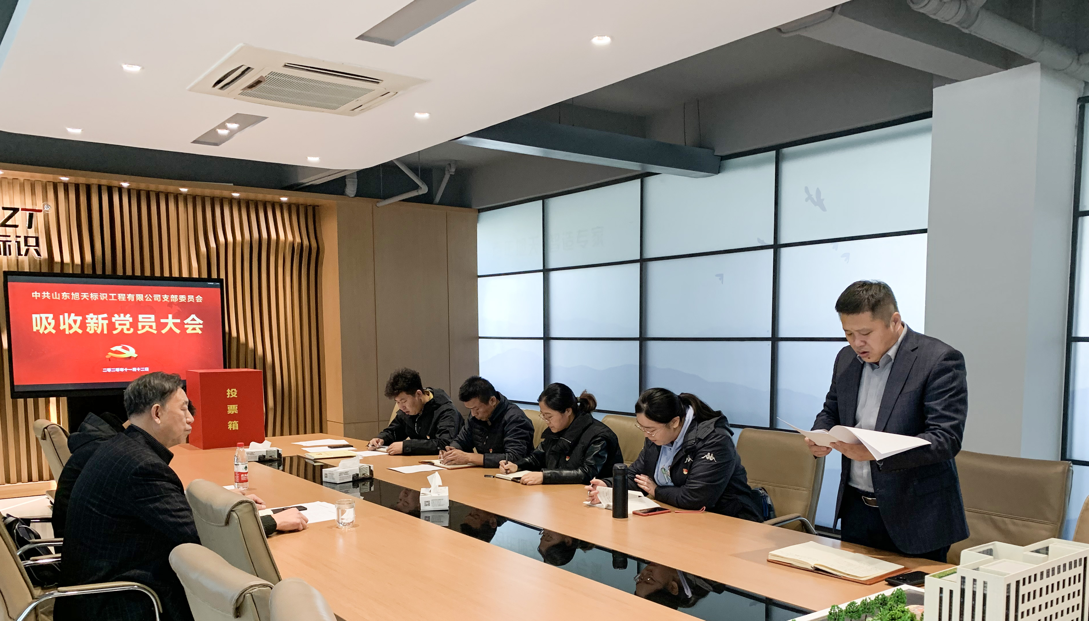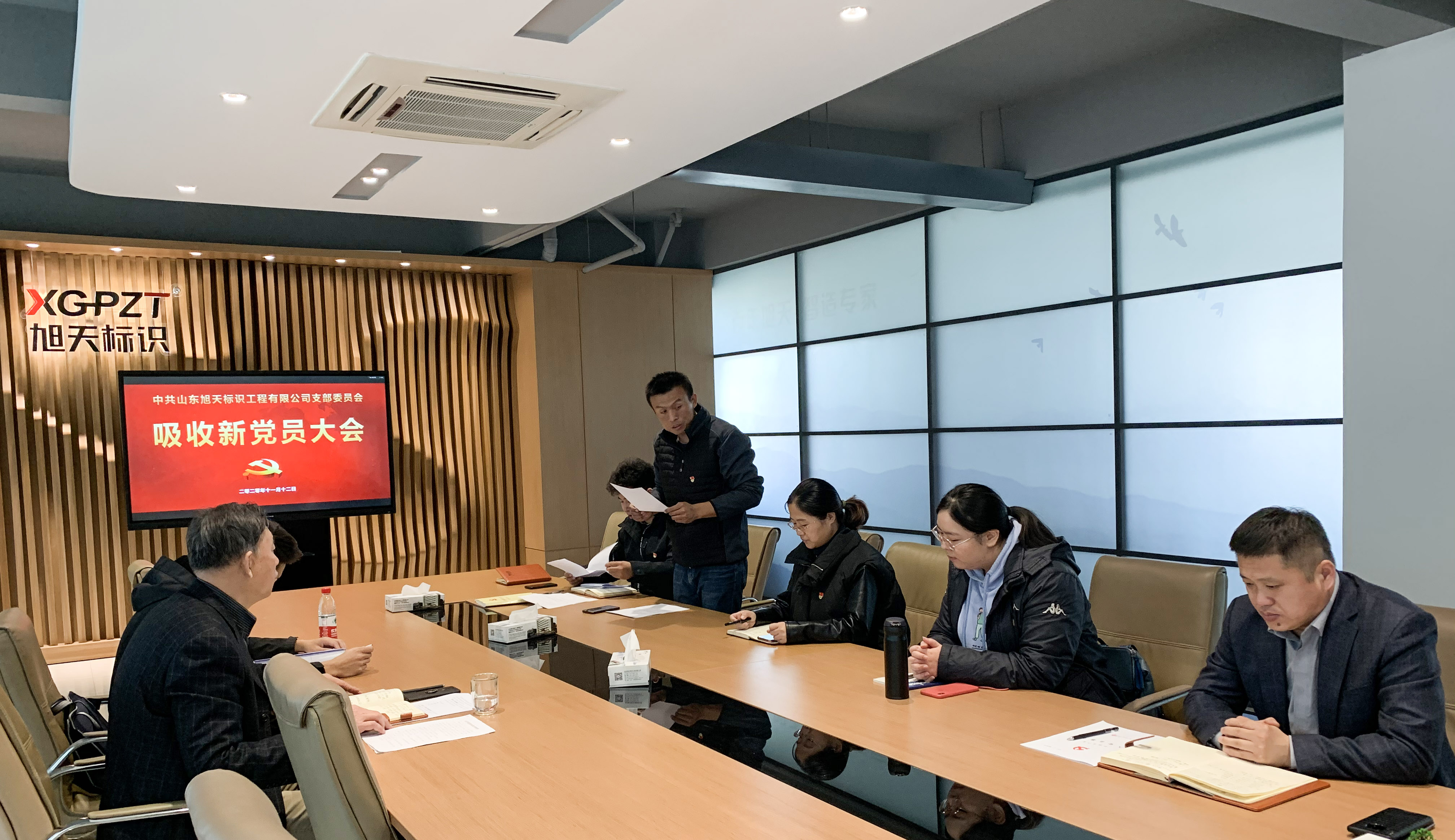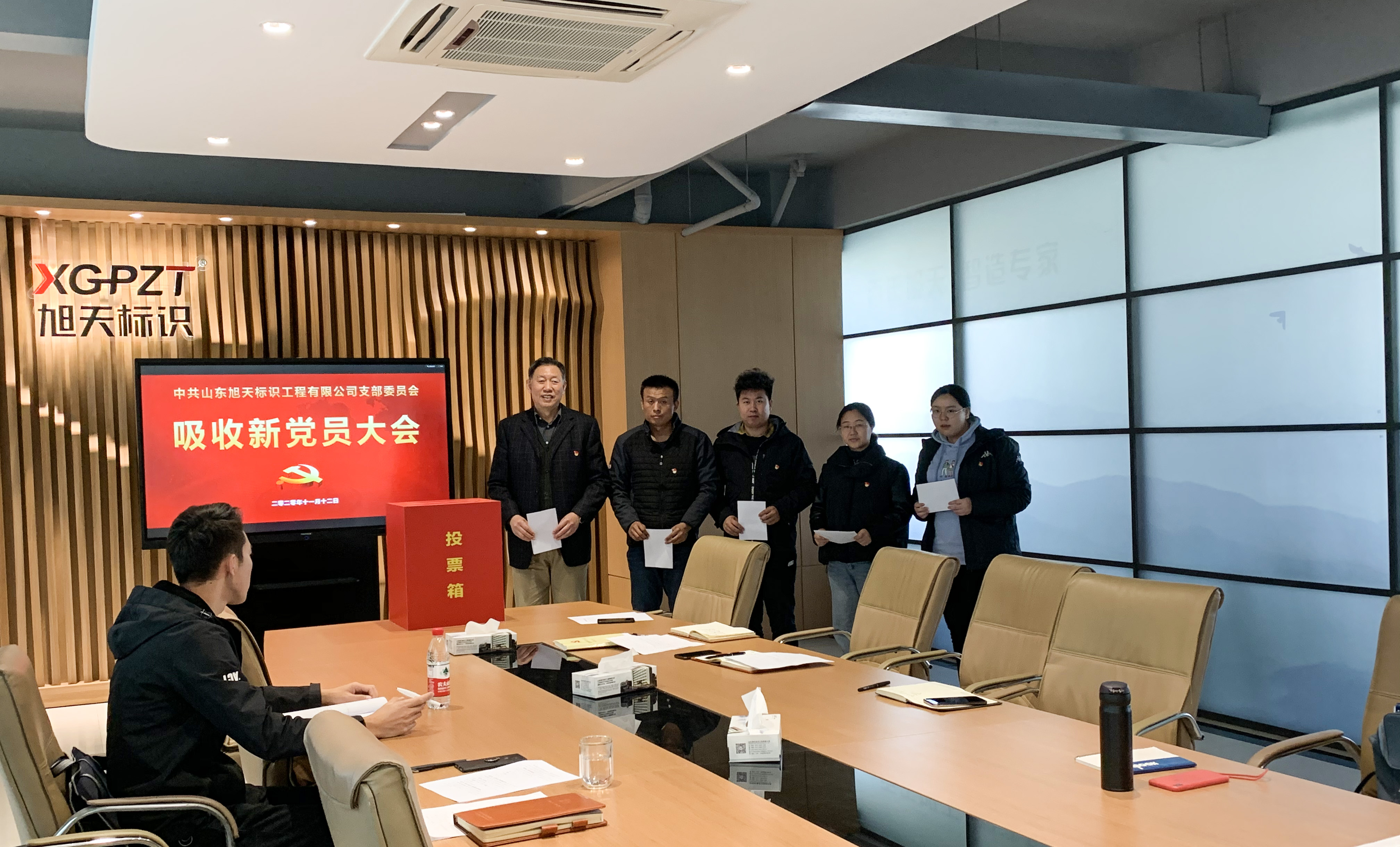 2020年11月12日上午,中国共产党山东旭天标识工程有限公司支部委员会于公司五楼党建会议室召开吸收新党员大会,会议主要讨论、投票表决关于吸收尹荣朋同志为中共预备党员的议题。