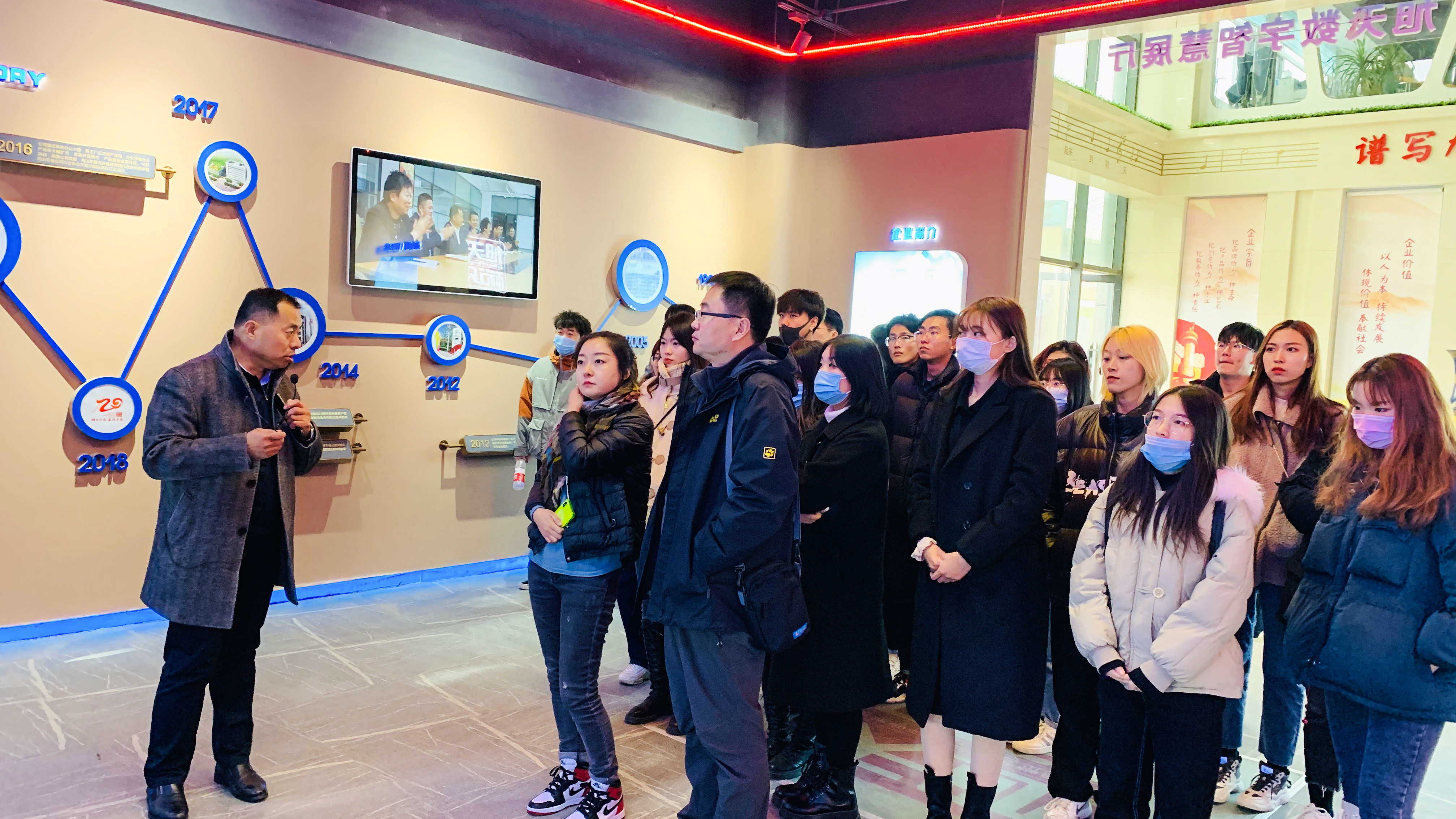 从公司一楼开始,苗总带领各位同学先后参观了公司数字智慧展厅、标识实物展厅、生产车间及办公场所。从理论到实践、从设计到生产,各个流程、各个环节进行了逐一的认识和学习。