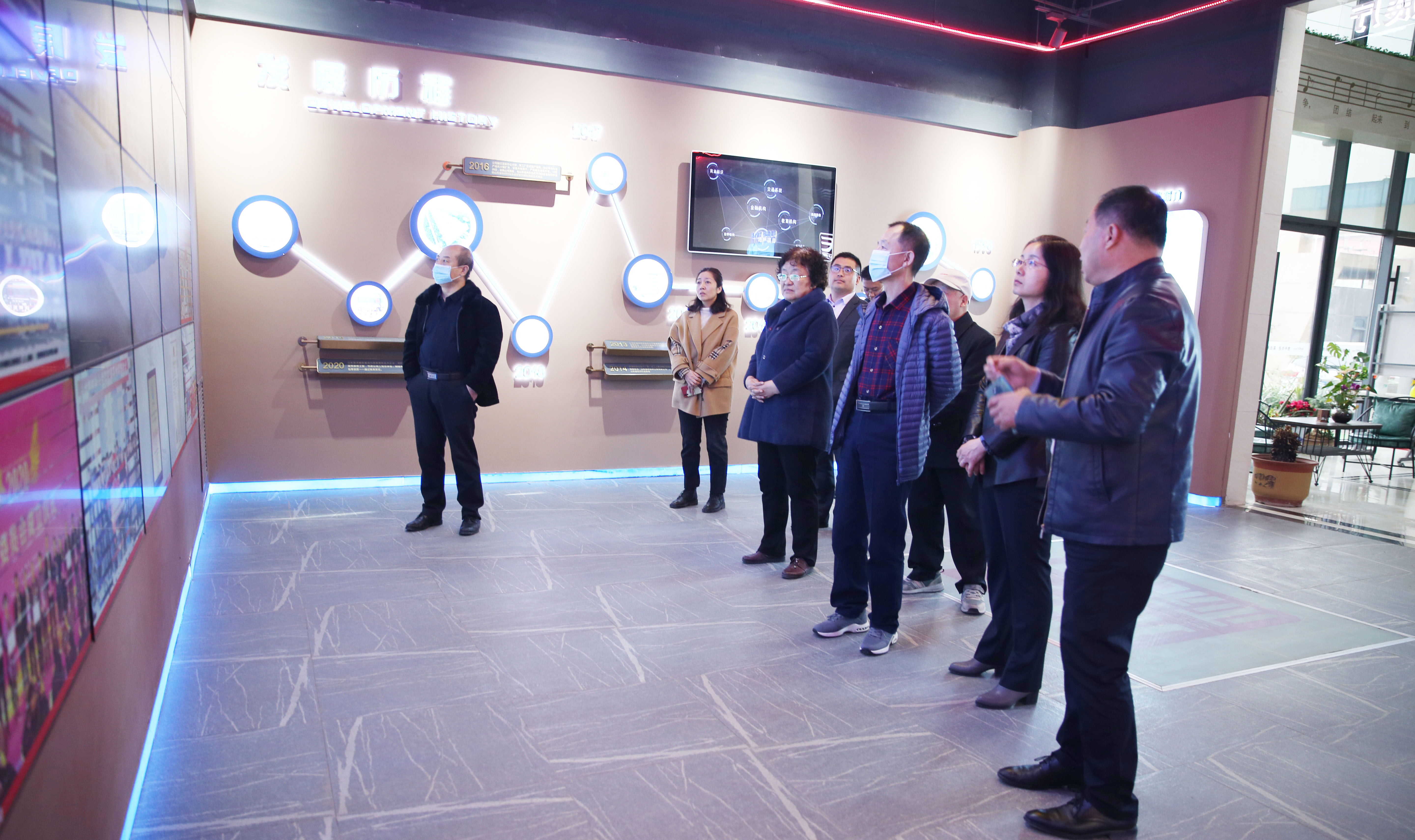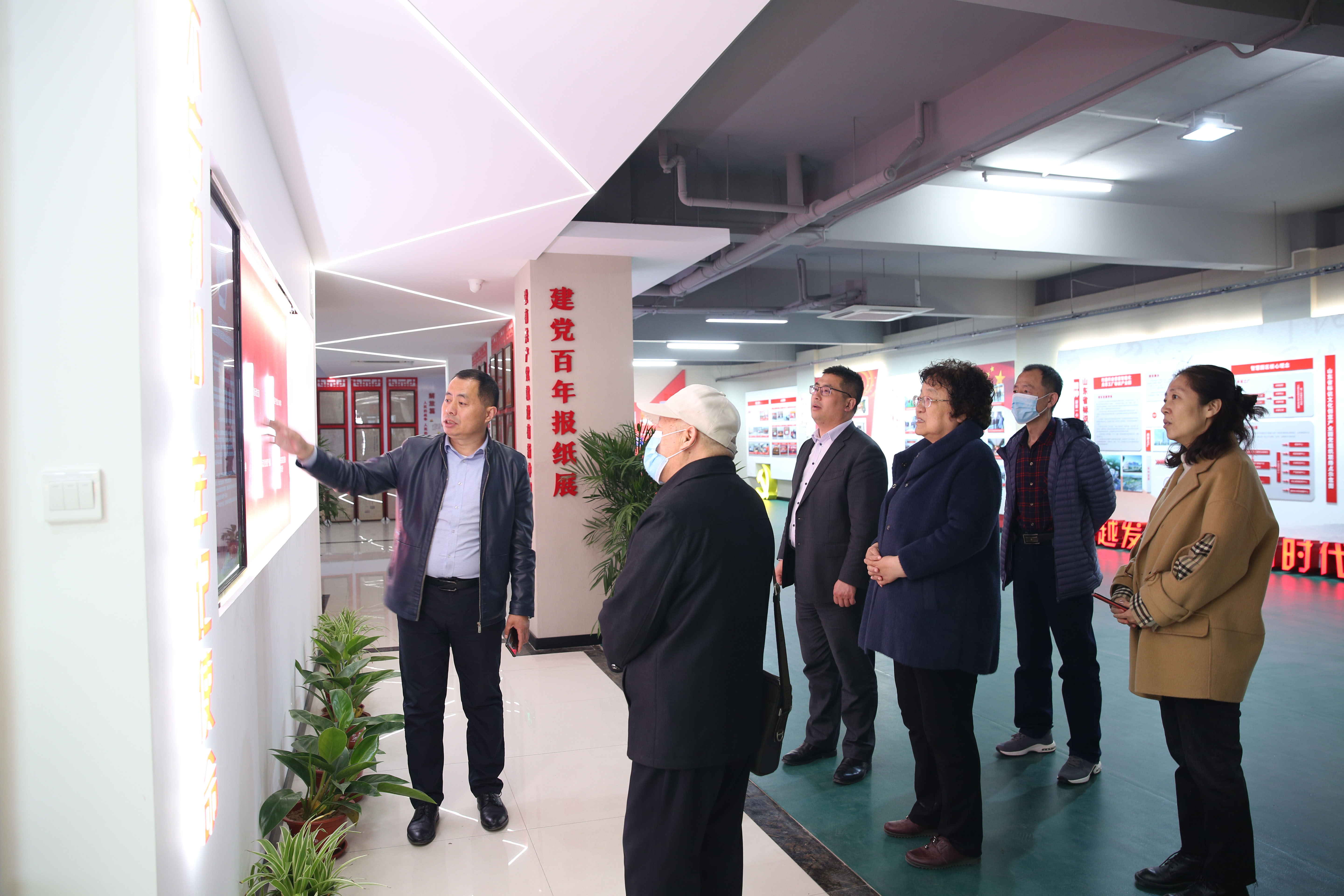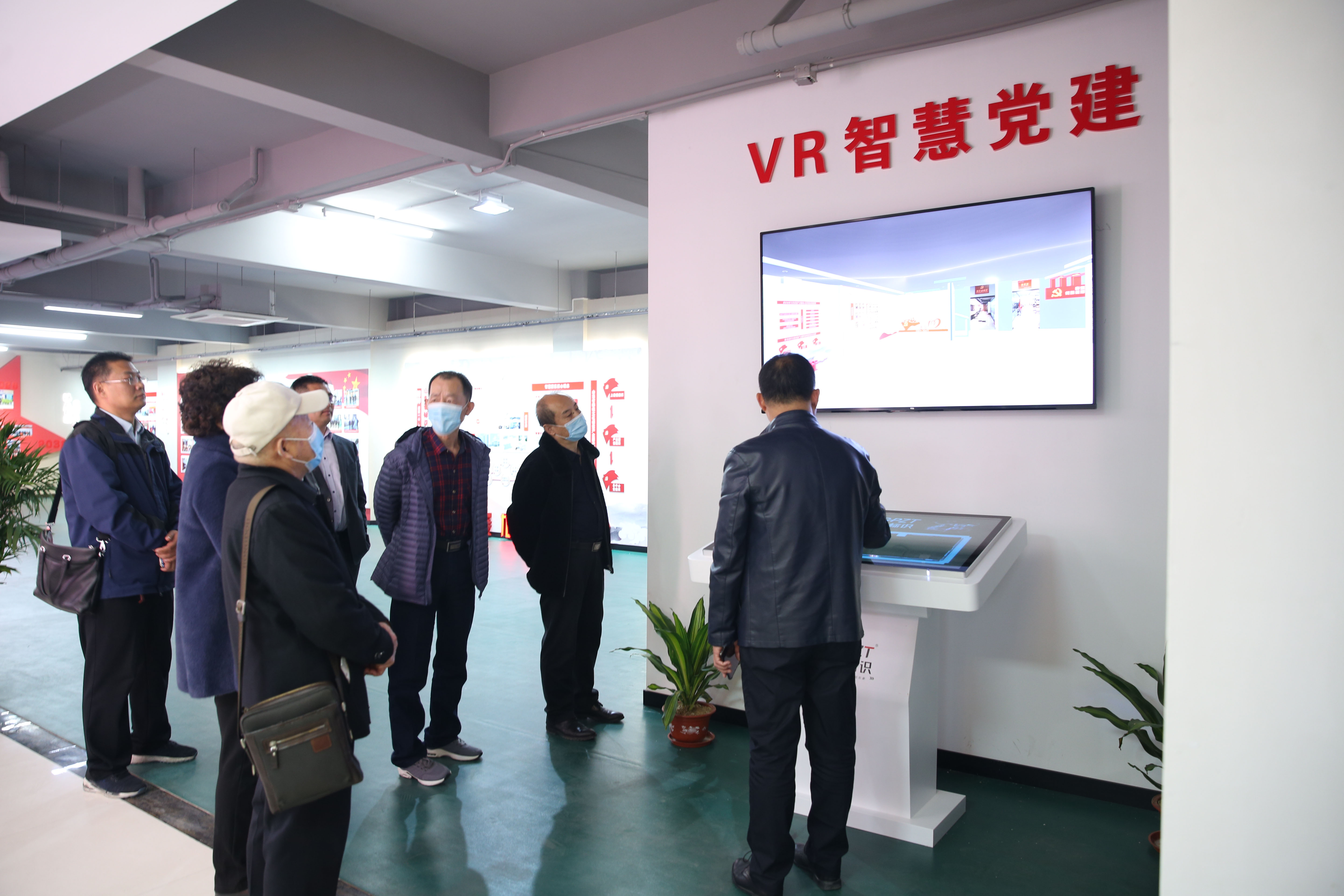 在公司五楼智慧党建教育基地,各位委员同志通过VR智慧沙盘、党建动态屏等多媒体技术,进一步了解了企业内部基层党组织的建设内容及党建教育的管理工作。