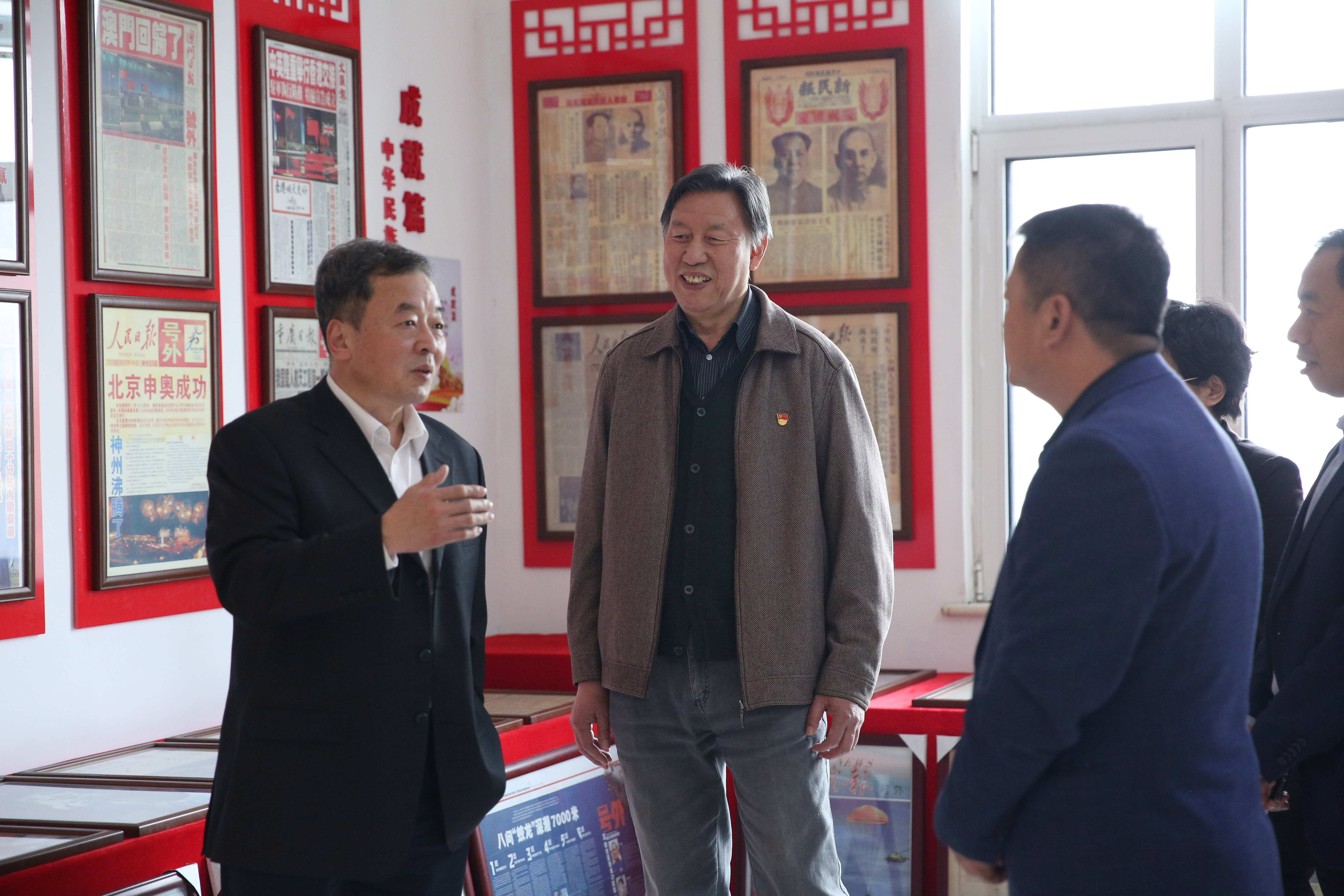 于公司五楼,张鹏一行着重参观考察了建党百年报纸展馆。跟随公司党支部书记高久成的讲解,重温党史知识,重走革命道路,回顾共产党人近百年来勇担使命的光辉历程、艰苦卓绝的奋斗精神和清正廉洁的优良作风。