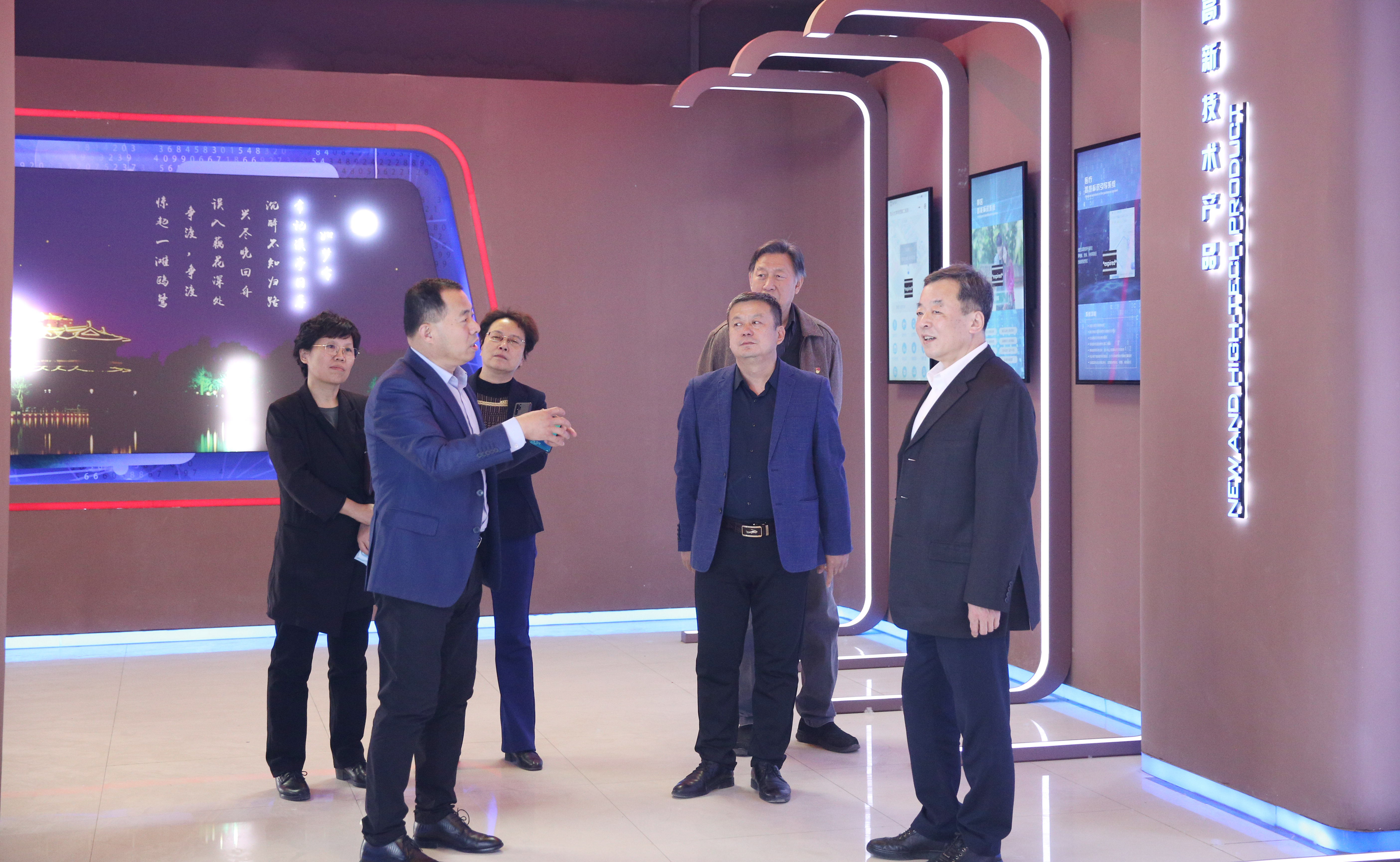 张鹏一行先后参观了公司数字展厅、标识展厅、党建教育示范基地及建党百年报纸展馆,对企业发展历程、企业文化、业务架构及市场布局等情况进行了了解。