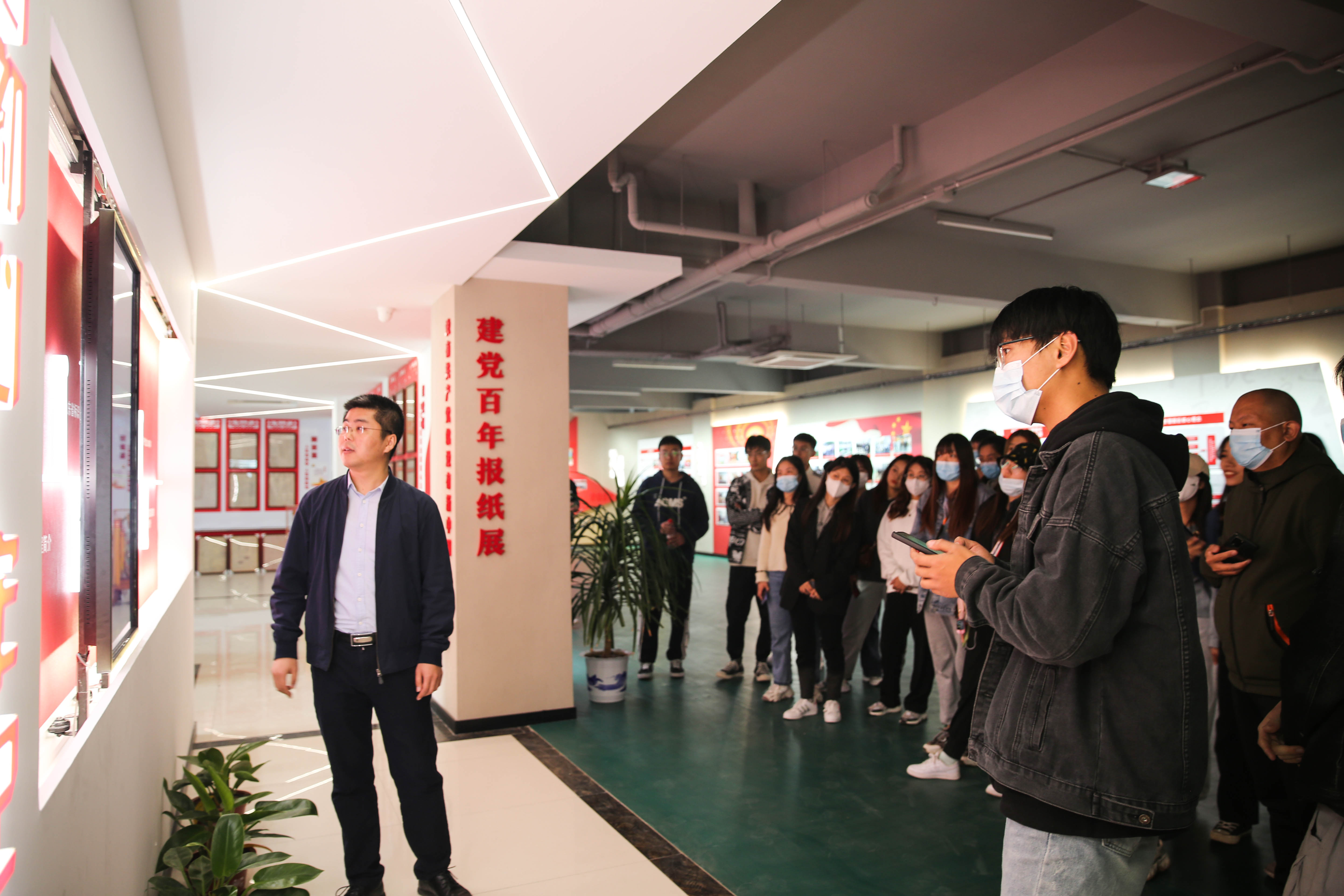 在公司五楼,同学们参观了旭天党建教育示范基地及建党百年报纸展馆,感受现代智慧党建的同时,重温党的发展历程,在革命精神洗礼中筑牢信仰之基,在红色文化滋养中补足精神之钙,在使命责任中传承清廉之风。