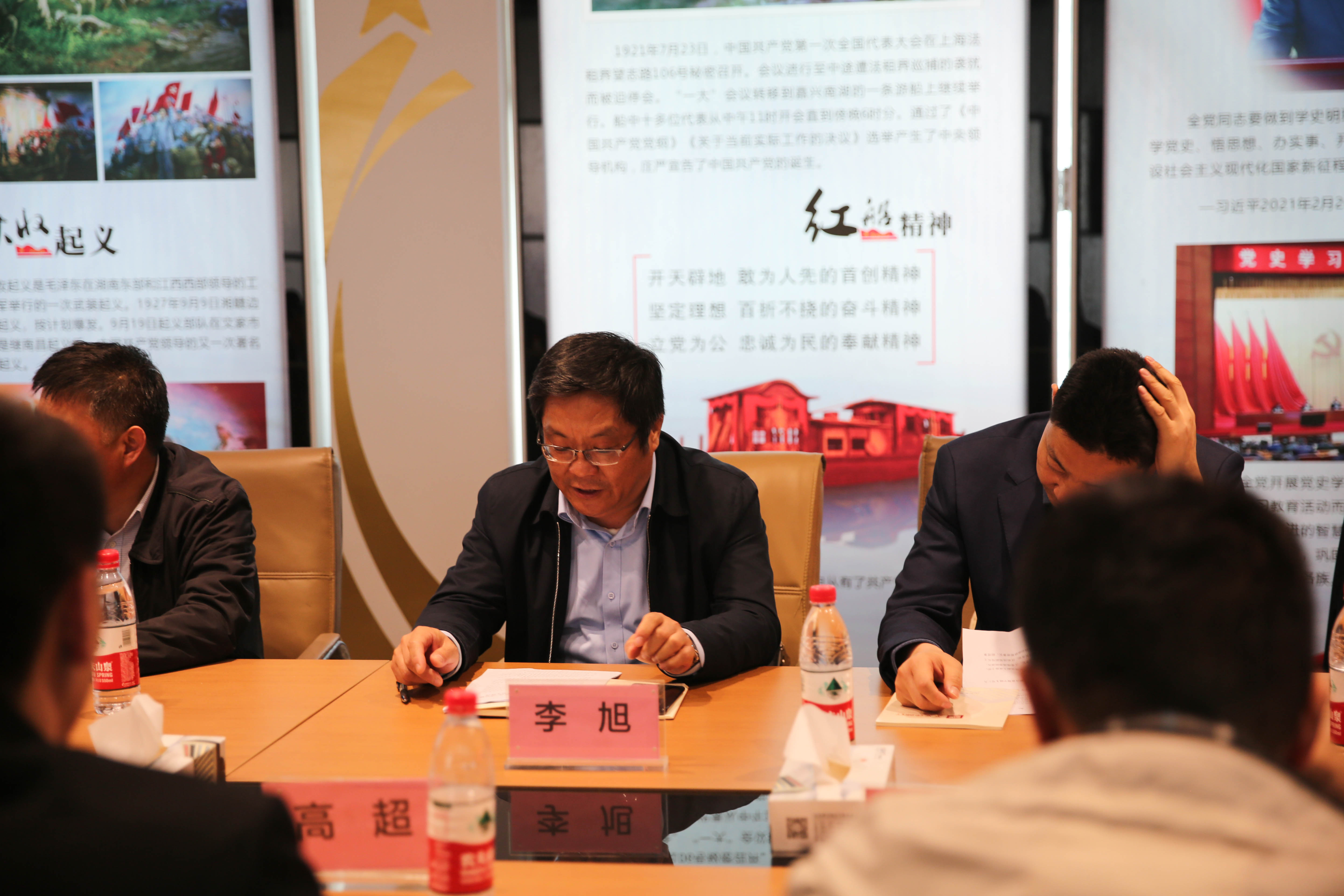 各参会人员通过参观山东旭天“没有共产党就没有新中国”百年报纸展、以及会议论坛等多种活动方式加强党史学习教育,提高支部党员的政治素养,坚定党员理想信念。参观过后由科创联盟组织的“科技赋能、创新天桥”科技创新论坛启动仪式在山东旭天五楼会议室召开。