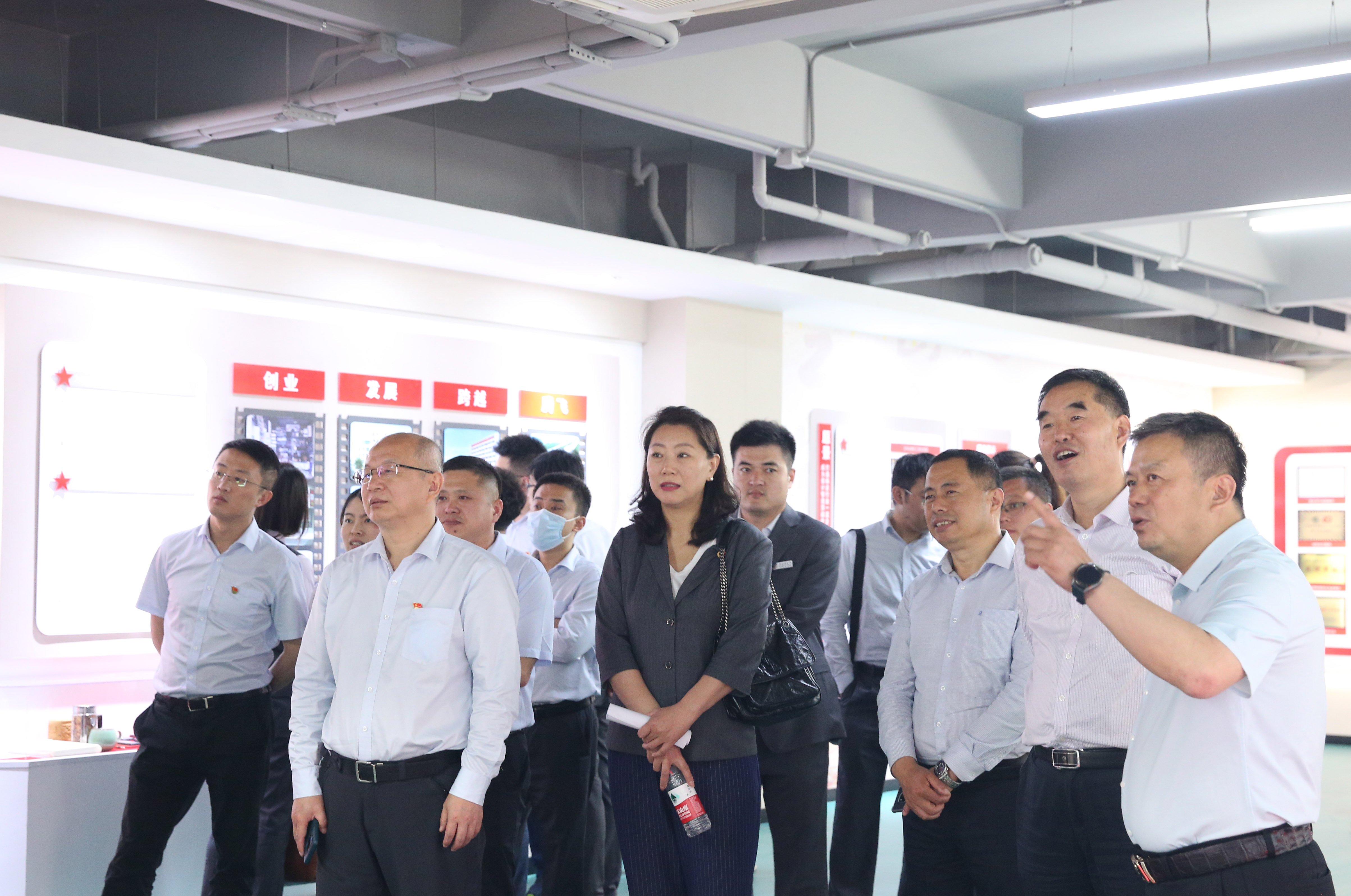 于公司五楼,孙照联同志一行参观了旭天党建教育示范基地与建党百年报纸展馆。了解了企业内部基层党组织的建设内容及党建教育的管理工作。
