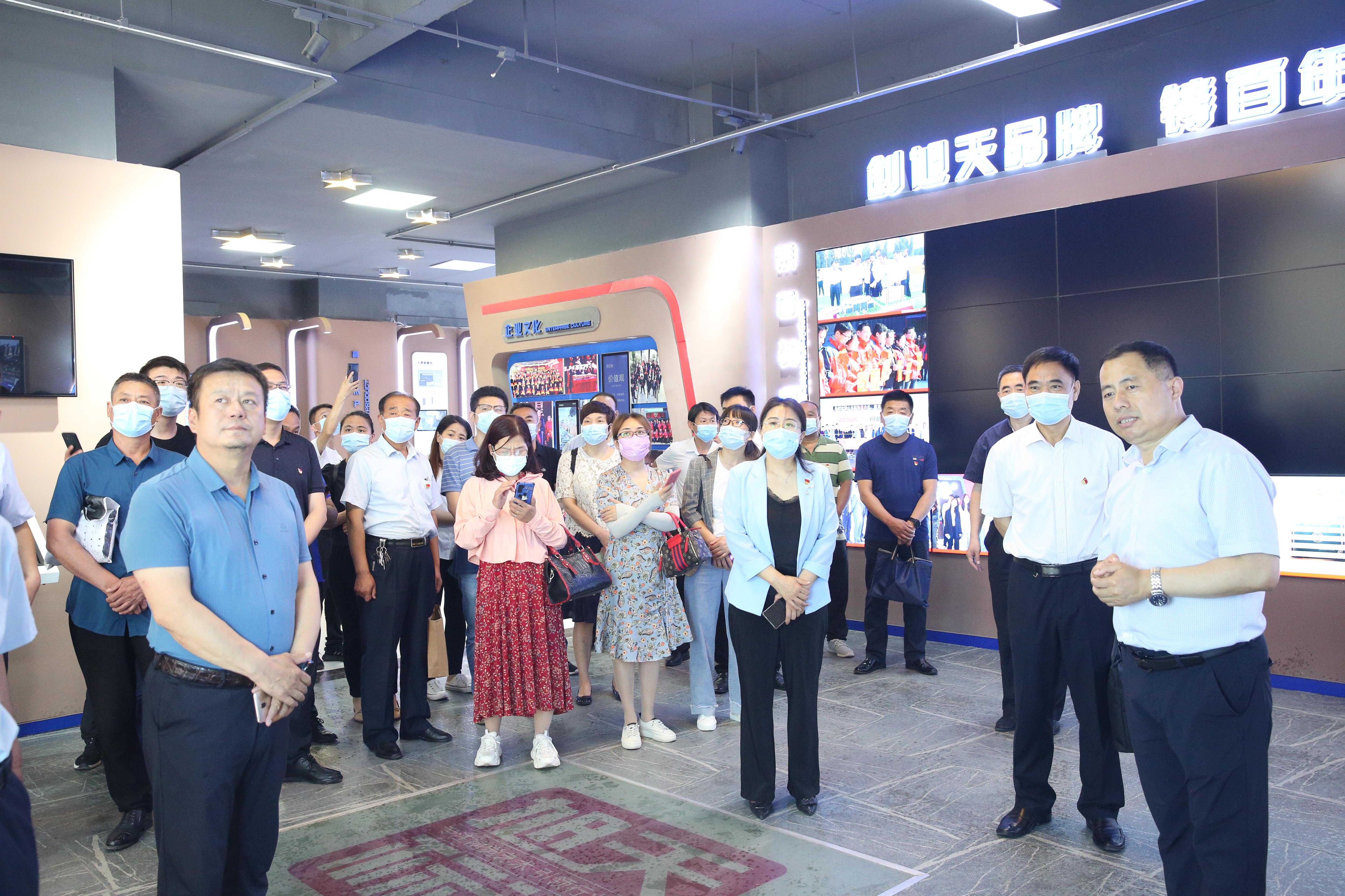 朱向泉一行先后参观了公司数字智慧展厅、标识展厅、党建教育示范基地及“没有共产党就没有新中国”建党百年报纸展馆,对企业发展历程、企业文化、数字智慧标识及企业党建工作的开展进行了相应的了解。
