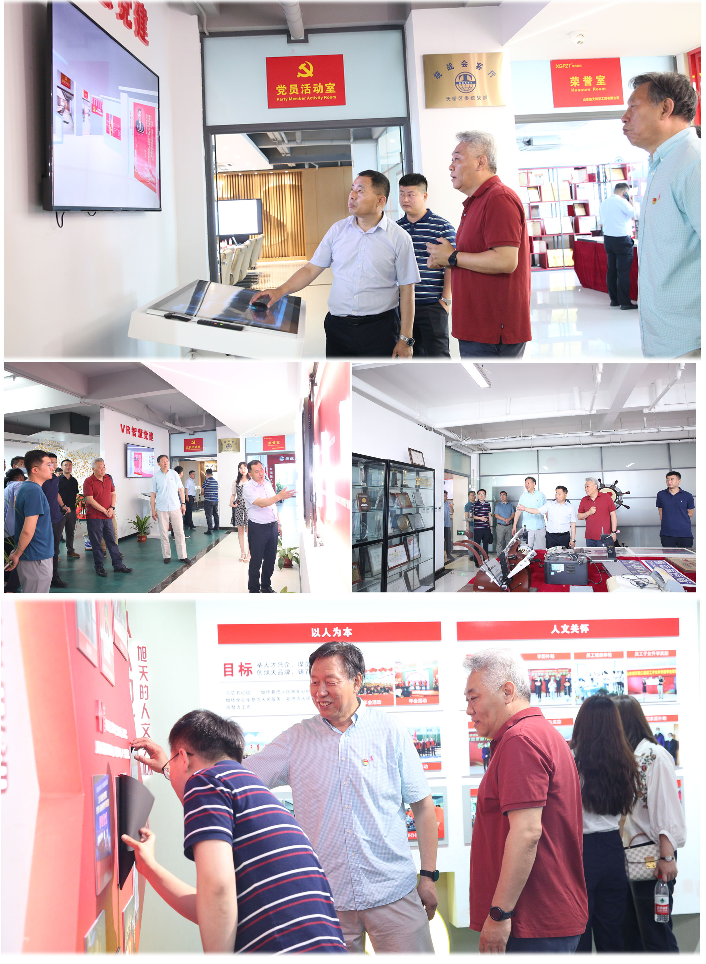 在党建教育示范基地,李鹏一行实地参观了企业VR智慧党建、党建滑动屏、3D空中立体旋转吊饰及企业所取得的荣誉成绩。