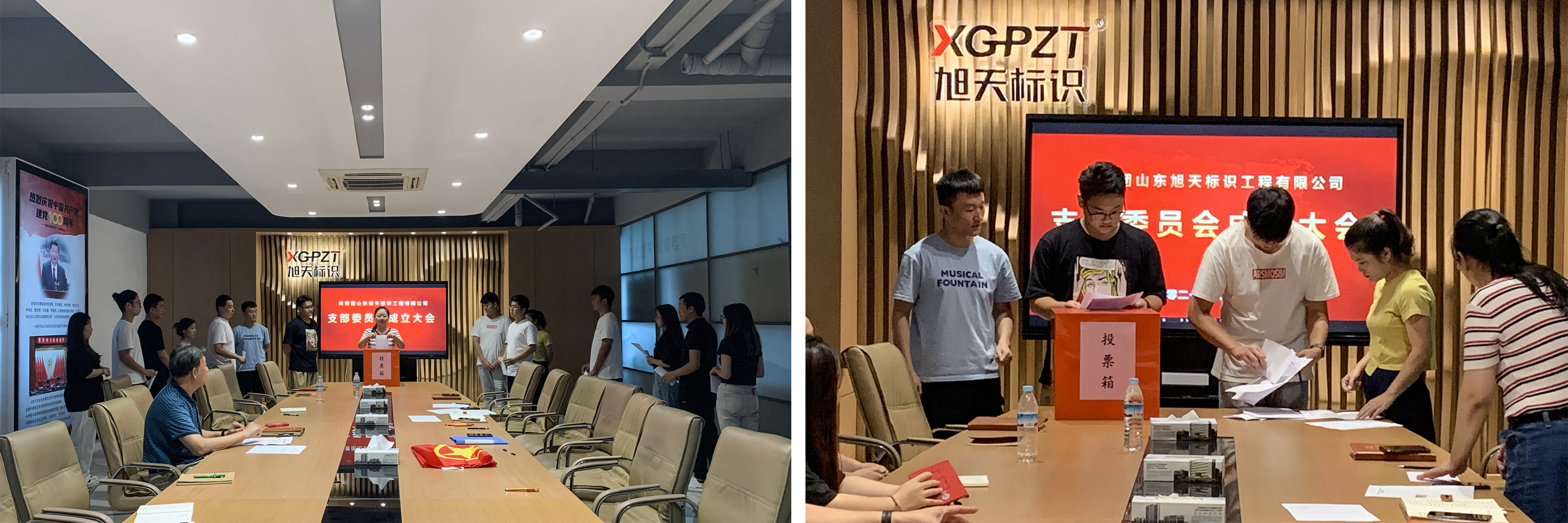 根据《中国共产主义青年团章程》和《中国共产主义青年团基层组织选举规则》的要求和相关规定,大会先后审议通过了候选人名单、选举办法、监票人及计票人名单,通过差额选举产生了第一届团支部委员,成立了共青团山东旭天标识工程有限公司支部委员会。并召开了第一届委员会第一次团员大会,通过无记名投票方式选举产生第一届团支部书记、副书记,并进行支部委员分工。