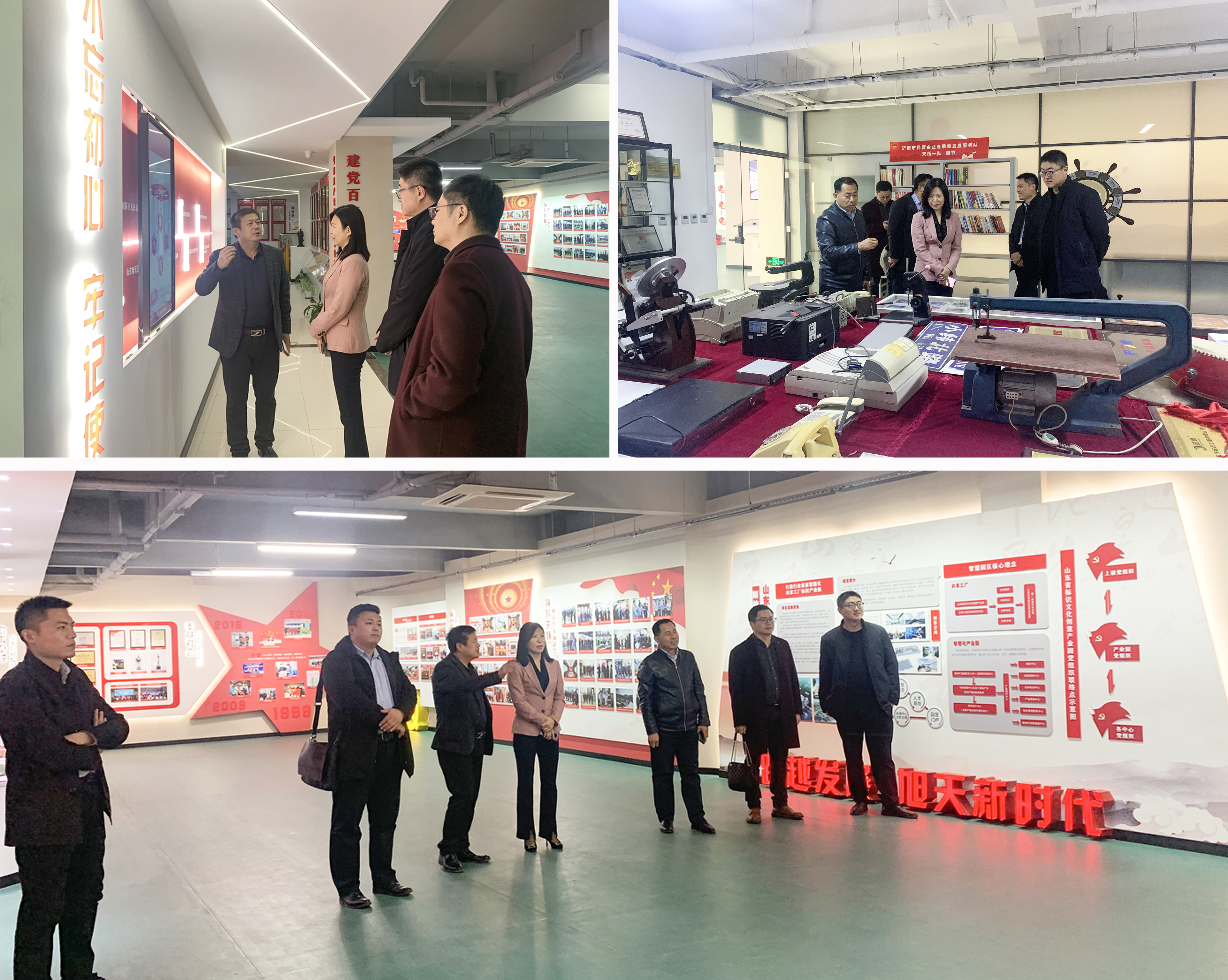 过程中,郑局长一行先后参观了公司数字智慧展厅、标识实物展厅、办公场所、生产车间、党建教育示范基地及“没有共产党就没有新中国”建党百年报纸展,了解了企业发展历程、企业文化、生产经营,并就山东省标识文化创意产业园项目的建设进度、运营模式、人才引进、项目招引及规划发展等方面进行了详细了解。