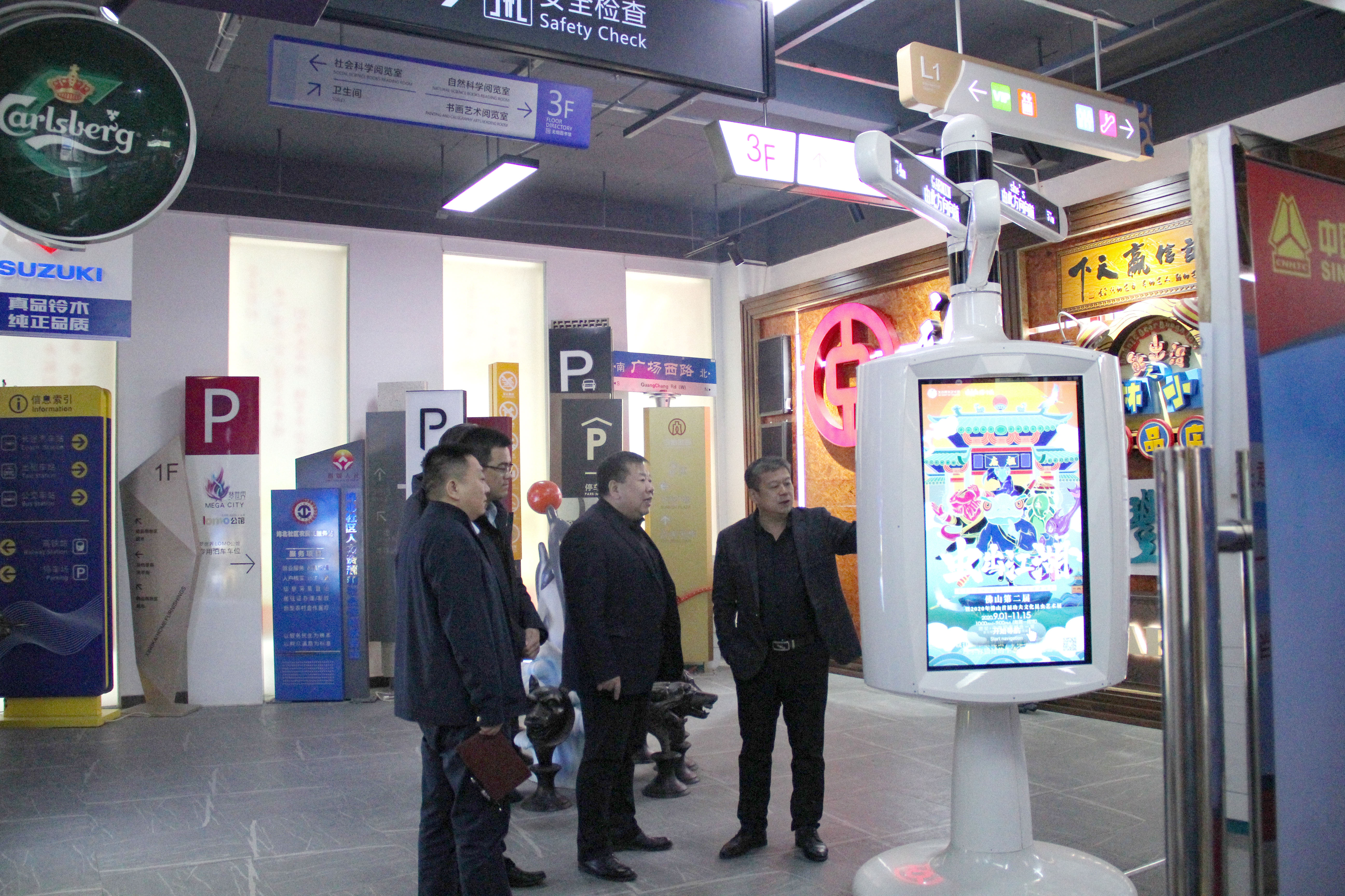 在标识实物展厅,王总向各位领导进一步介绍了不同种类、不同形式及不同行业的标识产品,并就公司“智能指路机器人”产品进行了详细介绍。