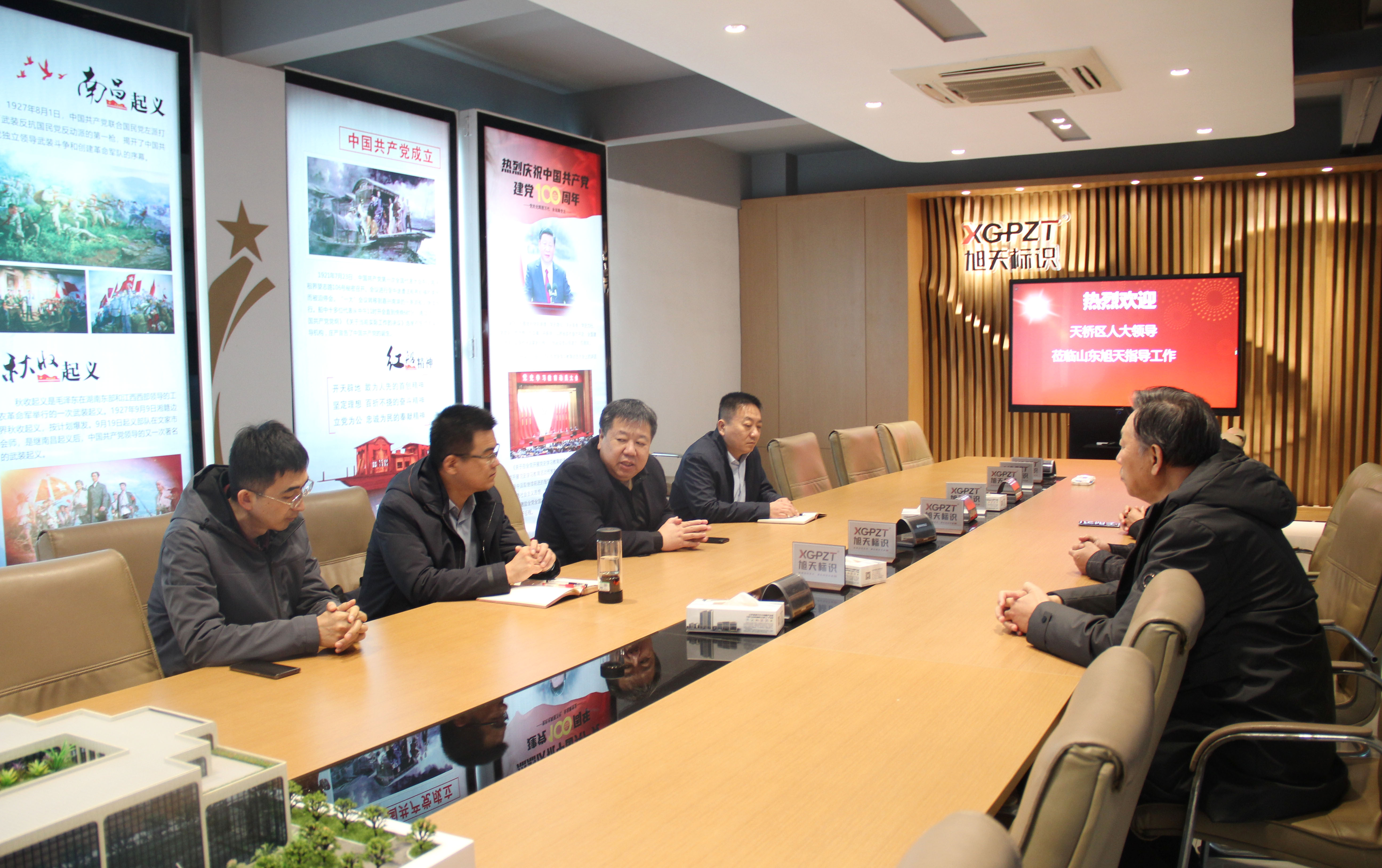 3月23日上午,区人大常委会副主任、区发改局局长孙启明,副局长张元生一行莅临山东旭天走访调研。药山街道办事处主任赵继展,副主任陈小宁陪同调研。