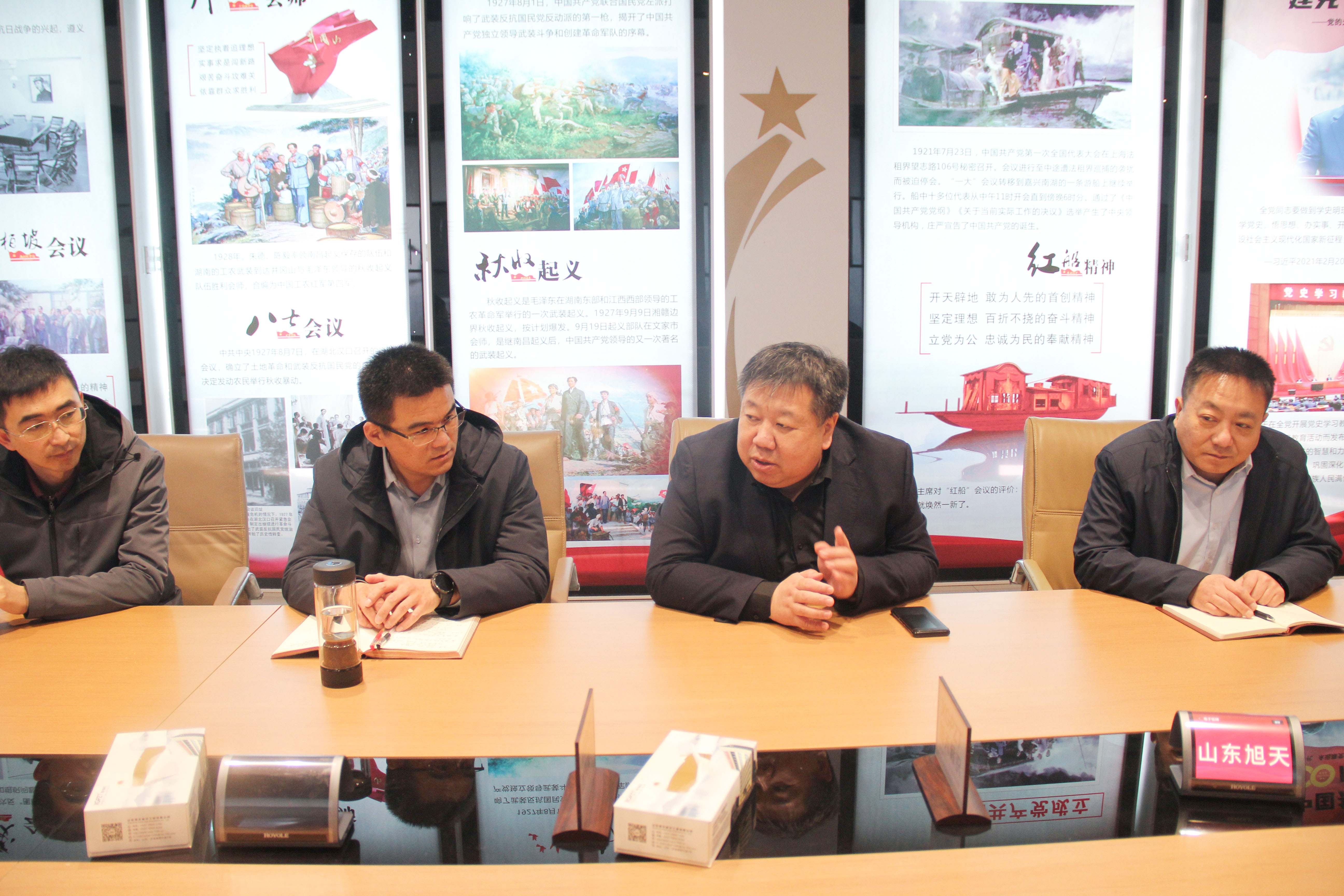 于公司五楼,孙启明一行深入了解了企业党建工作的开展情况,参观了企业党建工作的实际做法,对山东旭天党建工作的开展给予了高度肯定。